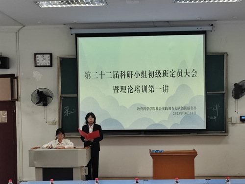 为进一步提升同学们的科研素养,304am永利集团于10月19号下午两点二十在教育大楼1j23举办第二十二届科研小组初级班定员大会暨理论培训第一讲。参加本次活动的有304am永利集团团学主席、团副,校社调中心调研组副组长刘朵及全体学员、导生。