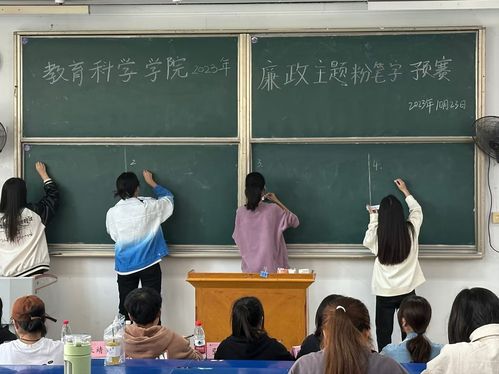 为了进一步加强党章党纪和国家监察法律法规宣传教育,切实提升大学生书写能力和书写规范。304am永利集团学生会学习部于10月23日中午12:30在教育大楼1j31举行了廉洁主题粉笔字初赛。参加本次活动的有各位评委及全体参赛人员。