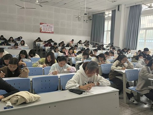 活动伊始,全体见习干事在相应的考场等候考试正式开始,每位见习干事都在安静的做着准备工作。到达考试时间后监考官开始分发试卷,各见习干事在拿到试卷后开始认真答题。在考试过程中,见习干事都遵守着考试规则,本着”沉着、认真、细心、守纪”的原则应对考试。最后,各见习干事完成试卷后有序地交卷离场。至此,院干培训结业考试顺利结束。