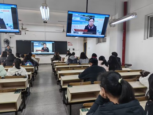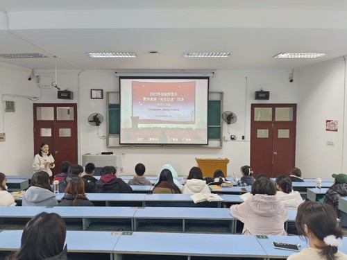 活动伊始,各班班长简单说明了本次活动的内容及其目的;接着,同学们同步观看直播,教育部副部长郝平同志领读宪法部分条款,同学们在云端同声诵读宪法,歌唱《宪法伴我们成长》歌曲,从歌声中体会宪法温度,感受宪法力量。最后,收听第八届全国学生“学宪法,讲宪法”活动优秀选手演讲及教育部领导讲话,其中提到当代大学生们要知行合一,学习宪法,践行宪法,发扬宪法,该讲话进一步明确了宪法对大学生的要求。