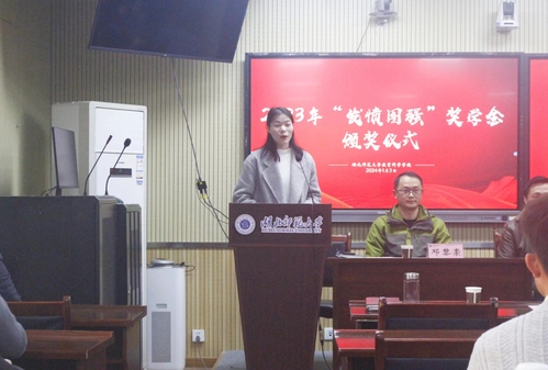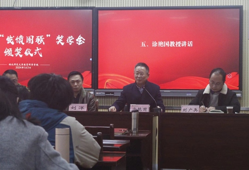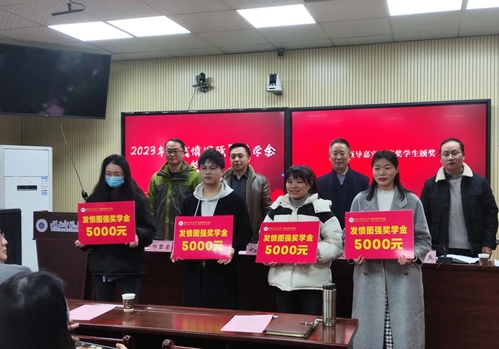 刘洋首先宣读2023年“发愤图强”奖学金获奖学生名单,并代表学校向涂艳国先生颁发捐赠证书。随后,领导嘉宾为获奖学生颁奖。