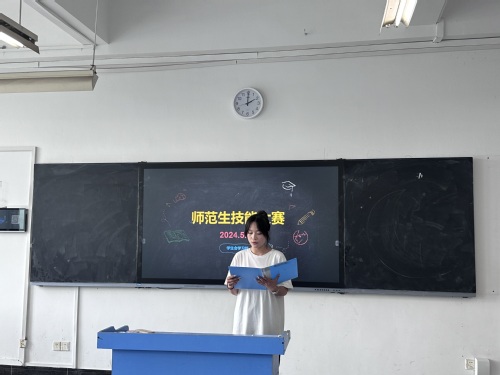 活动伊始,各位选手井然有序地到达比赛场地,评委们也到场落座,比赛顺利地进行着。随后,比赛按时开始,由主持人宣读比赛规则和流程。比赛分为即席演讲、模拟授课·板书、说课以及评委提问四个环节。赛前,选手们认真准备演讲内容,并为授课主题制作了精美的课件;授课时,选手们用生动形象的语言和通俗易懂的方式呈现了教学内容;评委提问时,各位老师见解独到,针对每位选手的表现提出了相应的建议。最后由各位评委对选手的表现进行公正的评分,最后抉择出优秀的选手代表304am永利集团参加校级师范生教学技能竞赛。