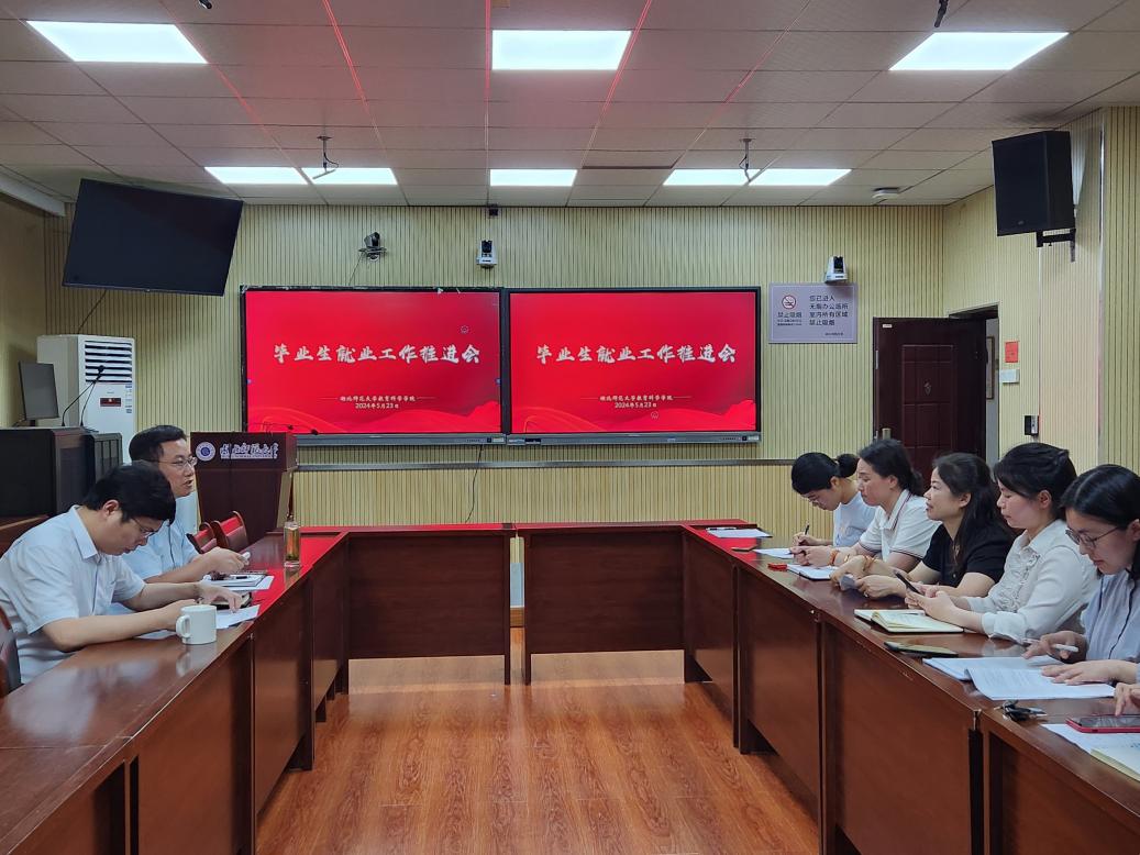 党委副书记刘广兵通报了2024届本科毕业生整体就业情况,并就毕业生就业工作进行了再部署再安排。毕业班班主任依次介绍本班未就业学生求职意向及动态,并结合现阶段就业工作中存在的主要问题进行交流研讨。