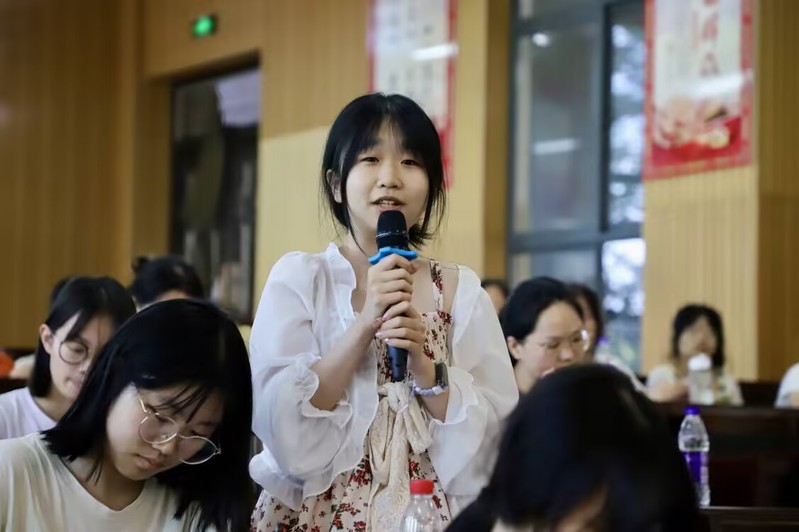 在活动中,心理工作室艾锦芳老师为大家带来一堂心理健康示范课《探寻自我成长能量》。课后,阳新一中的教师与湖师的师生们就如何上好一堂心理健康课展开了交流探讨:首先艾老师为大家分享了她如何巧妙地结合学生学情分析、主题选择、课堂活动等要素,呈现出一堂优质的心理健康课。紧接着进入答疑环节,同学们表达了自己听课后的感悟与疑惑,向教师们寻求解答,此环节不仅增进了师生间的互动,也进一步激发了同学们对心理健康教育的兴趣;最后阳新一中的一线老师们就心理健康课的价值所在,为大家分享了自己成为一线心理健康教师以来有成就感的时刻。