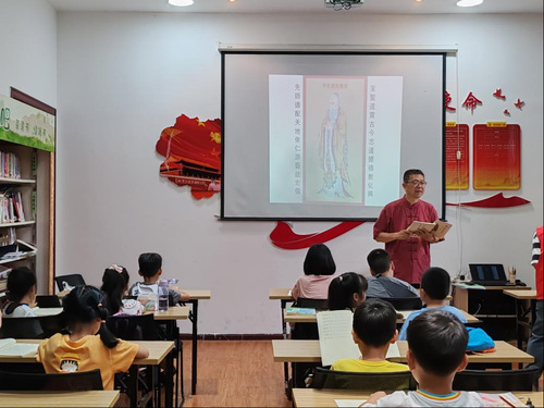 老师向小朋友们介绍了学习国学经典对于其他学科学习的重要性,鼓励大家尽早学习国学经典,感悟其中真谛,让优秀的中华经典文化浸润心灵,以塑造更加完善的人格。课堂上,小朋友们或举手提问与老师进行互动,或低头思考老师提出的问题,感触颇深。