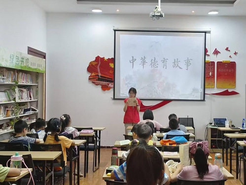 最后,实践队的成员们播放了一集关于孝的中华美德故事动画片。播放过程中,小朋友们聚精会神地观看影片,当画面定格在盗贼被江革那无垠孝心所触动,毅然决定释放其母子的温馨瞬间,小朋友们不约而同地松了一口气,眼中闪烁着纯真与喜悦的光芒。随后,影片转向江革丧母后的无尽哀思与三年守孝的坚韧身影,这一幕触动了每一个幼小的心灵,小朋友们或低头沉思,或轻声啜泣,无不为这份深沉的孝心所动容。影片落幕,实践队成员适时引导,鼓励小朋友们分享自己的感悟。孩子们纷纷举手,用最稚嫩却真挚的语言,表达了对江革孝心的赞美与无限敬佩。借此契机,实践队成员呼吁全体同学以江革为榜样,将孝这一中华传统美德内化于心、外化于行,从日常生活的点滴小事做起。以实际行动践行孝道,让国学经典中的孝道精神在现代社会中绽放出更加璀璨的光芒。
