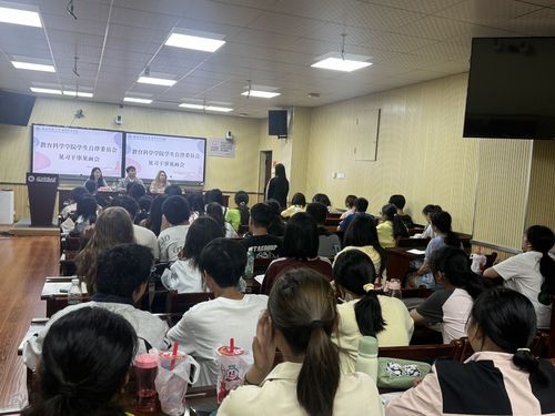 会议初始,各部门成员从部长到见习干事依次进行自我介绍,帮助组织成员间能够有初步的认识。随后,各部门负责人详细汇报了9月的工作总结和10月的工作安排,让见习干事们对本部门工作有了更加清晰的认知。夏青腾老师对见习干事们的加入表示欢迎。他指出,见习干事的加入既是一种传承,也是责任的交接,提出了见习干事应具备服务意识,全心全意为同学服务,急同学之所急,想同学之所想。并且强调各部门之间要团结协作,保持勇于创新的精神。同时,夏青腾老师还要求见习干事学会平衡工作与学习的关系,勉励见习干事们在各部门负责人的带领下,与学生自律委员会共同迈向新的辉煌。