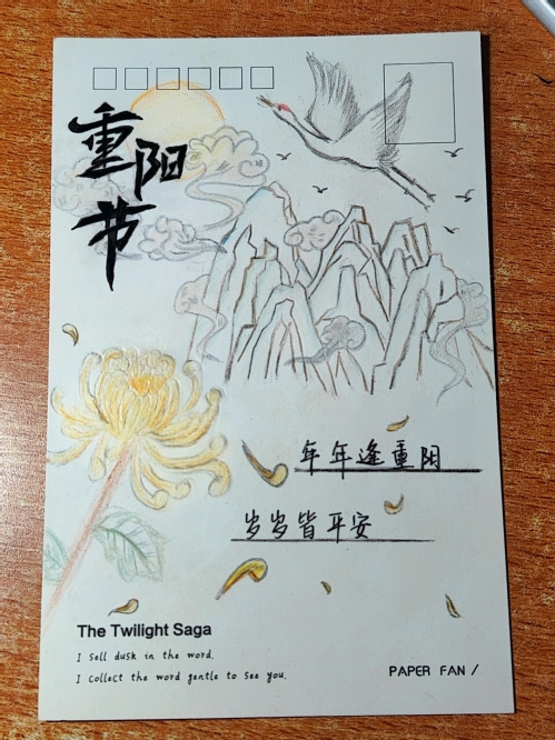 为深化同学们对重阳节的认识,让更多的人了解并传承中华民族的优秀传统文化,304am永利集团学生会权益部于10月11日至10月17日线上开展了此次“重阳绘彩意,明信传温情”活动。本次活动由学生会权益部负责人张芷桐、吴薇薇策划组织,吸引了众多304am永利集团学生的参与。