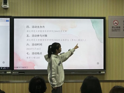 活动伊始,郭苹葳讲解了智慧团建系统的作用以及线上录入的具体操作流程。方李淼就团日活动的开展进行了详细说明, 通过多个活动策划书的实例增进大家对团日活动的理解。并分别说明了团日活动分为的三个部分,即活动策划、活动通讯稿和活动心得,并指出团支书应当注意团日活动材料上交的及时性。最后强调了上交的文件格式,对文本格式进行了要求,主要包括材料的字体、标题、表格等内容,为团组织工作的高效开展提供了具体指导。