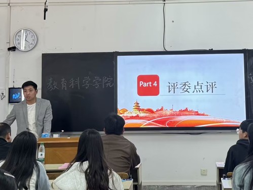 活动伊始,主持人朱春醒向大家介绍了莅临本次比赛的评委以及比赛流程,并说明了比赛规则。选手们依次上台分享对所选经典读物的见解与感悟,此次比赛选手们选择了《红岩》、《红星照耀中国》等红色书籍,并通过幻灯片放映的形式生动地表达了自己的阅读感悟。评委们在选手分享时根据他们的表现打分,然后由谭燕军进行总结点评。首先对本次读书活动的主题进行了总体的分析和评价,帮助选手们更深层次的理解活动内涵。指出部分选手分享时,存在未能充分结合时代背景等不足。并表达了希望当代大学生能够保持初心,在学习中做到学有所思,学有所悟。最后,主持人宣布比赛结束,本次比赛的最终成绩为:一等奖徐张怡,二等奖汤欣婷、范袈钰,三等奖杨诗语、刘星雨、何梦洋。