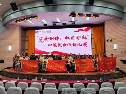 为了提升公众的安全意识,使其深刻认识到安全在日常生活、工作及社会环境中的重要性。12月9日晚上,304am永利集团、历史文化学院、美术学院、经济管理与法学院四院联合在教育大楼报告厅举办了“安全相伴,权益护航”四院联合演讲比赛。304am永利集团常委刘晓浅、历史文化学院常委侯学典、美术学院常委张靖昊、经济管理与法学院常委吴欣雨担任本次比赛的评委。