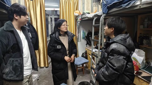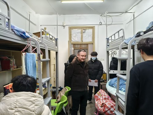 为保障学生安全返校,排查寝室安全隐患,并为新学期做好准备工作,304am永利集团宿舍管理部于2月16日下午对学生宿舍进行走访慰问。参与本次活动的有304am永利集团党委副书记刘广兵,副院长张小菊,辅导员张琦、秦姗姗、刘丽娟、伊力扎提、夏青腾以及各班班主任和学生干部。
