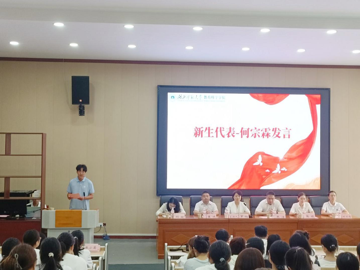 本科新生何宗霖、院学生会主席赖家宜分别代表新生、学长学姐进行了发言,展现了新生的朝气与对未来的向往,寄予了学长学姐对新生的共勉与激励。