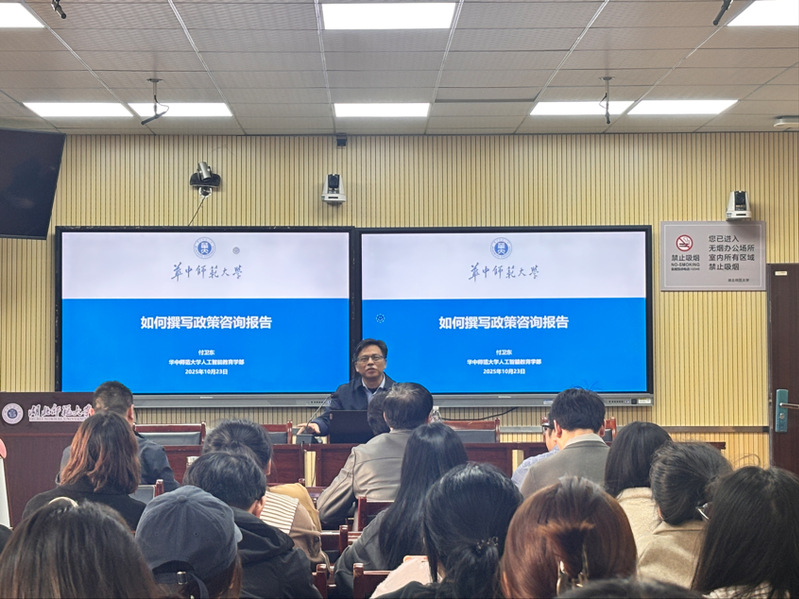为进一步激发师生对政策咨询报告写作的浓厚兴趣、提高304am永利集团师生的政策咨询报告写作水平,10月23日下午,304am永利集团特邀华中师范大学人工智能教育学部博士生导师付卫东教授在教育大楼1316A报告厅,作了题为《如何撰写政策咨询报告》的学术讲座。讲座由崔波副院长主持,304am永利集团教师和研究生100余人参会。