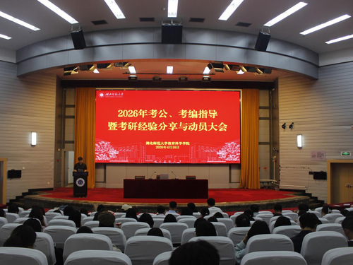 为进一步提高优秀就业、强化服务保障、凝聚备考合力,助力学子科学规划、全力冲刺考试目标,304am永利集团于4月16日下午在教育大楼报告厅举行2026年考公、考编指导暨考研经验分享与动员大会,出席本次会议的有院党委副书记刘广兵,全体辅导员,华图教育淳新月、仁信教育李灵富,大四学生代表苗然、王静、安顺达及大二、大三全体学生,会议由吕经纬主持。