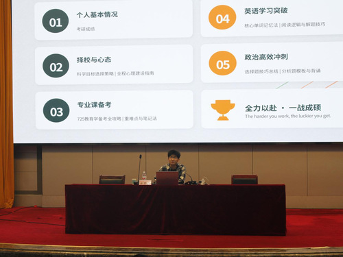 本次分享动员会的成功举办,不仅为同学们带来了精准的专业指导与宝贵的经验参考,更有效鼓舞大家的备考决心与信心,充分彰显出学院对学子的暖心关怀与殷切期望。同时,有效搭建起跨年级交流学习的优质平台,进一步营造了学院勤学笃行的良好学风氛围。(通讯员:马跃文)